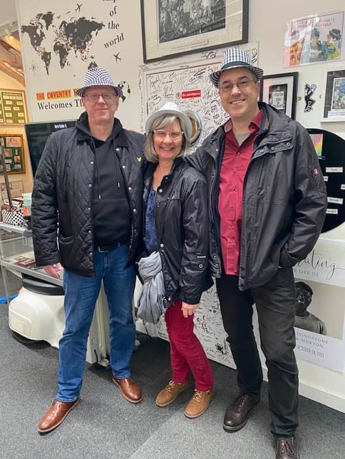 Yes, it was a busy week but I really enjoyed it. Particularly the desire of so many people involved to show me as much as possible of Coventry’s characteristics overwhelmed me. On Thursday, the fourth day of my visit, Monika and Nikolai again popped in when Peter and I were still having our croissants, chatting at the breakfast table. They took me to the Music Museum and I learned a lot about Two-Tone and the clash of the early 1980s. Head of CAIF Ram Lakha, although very busy with the elections at that time, joined us when we were just taking photographs wearing silly hats. The more serious part of cultural programme took place at St Mary’s Guildhall next to the cathedral which miraculously had survived war time. I met Cleo, Emilie’s eight months old daughter, for the first time and she already seemed to know much more about English history than me as she was very well-behaved the whole afternoon.