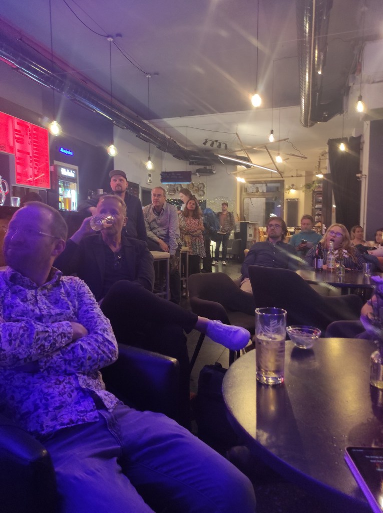 Another performance was with CVDD Arts Exchange which was a wonderful evening of sharing my poetry with visual artists from Dresden, many of whom have enjoyed residencies in Coventry. We had some great conversations, exchanged details. I got to see some of their work which I very much enjoyed. Lucas Oertel was a very warm and welcoming host. We spoke about the possibilities of visual artists collaborating with writers in the future and what that might look like.
