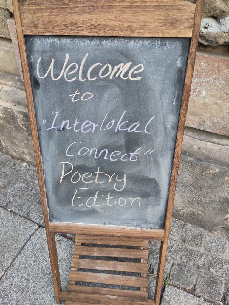 My first performance was at Interlokal with international people who’ve made Dresden their home. There were people from India, UK, Russia, Czech Republic and Germany in attendance. The poetry went down very well with the audience. One piece of feedback on my performance was “your words are honey on my heart”. Afterwards I opened the floor for questions. It was inspiring to hear diverse voices and perspectives, and the discussions were incredibly enriching. My work and the event was shared through Interlokal social media channels and I received several requests for followers who are still in touch as I write this from the UK. Audience members wrote personal messages to me and asked for physical copies of the poems I shared. I received an open invitation from Fatima Darbar to come back and perform again.