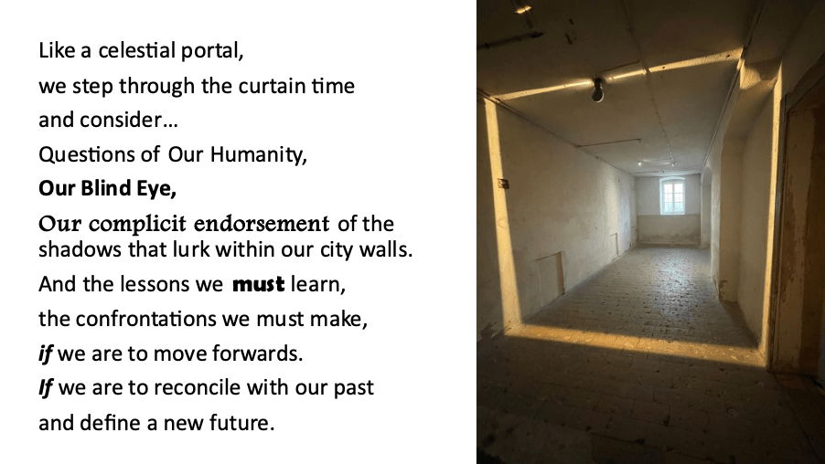 We walked through this basement – a coldness that wrapped itself around you. The shadows of the stories it held hovering. We felt the weight of the knowledge absorbed into our skin as we bore witness to the site; becoming vessels of its truth.