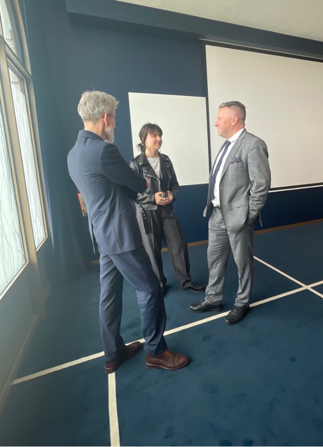 The photo shows Alicja talking to the Polish delegates at the conference