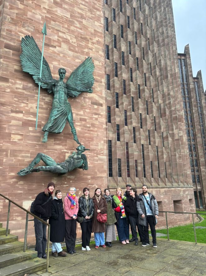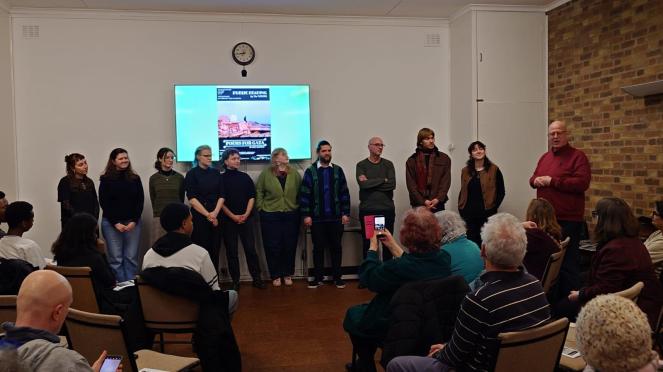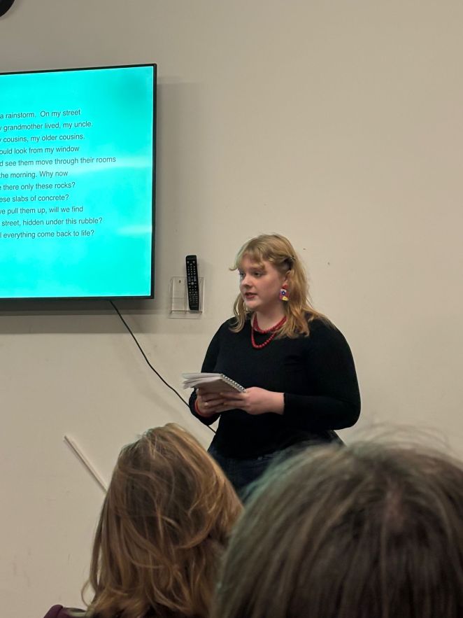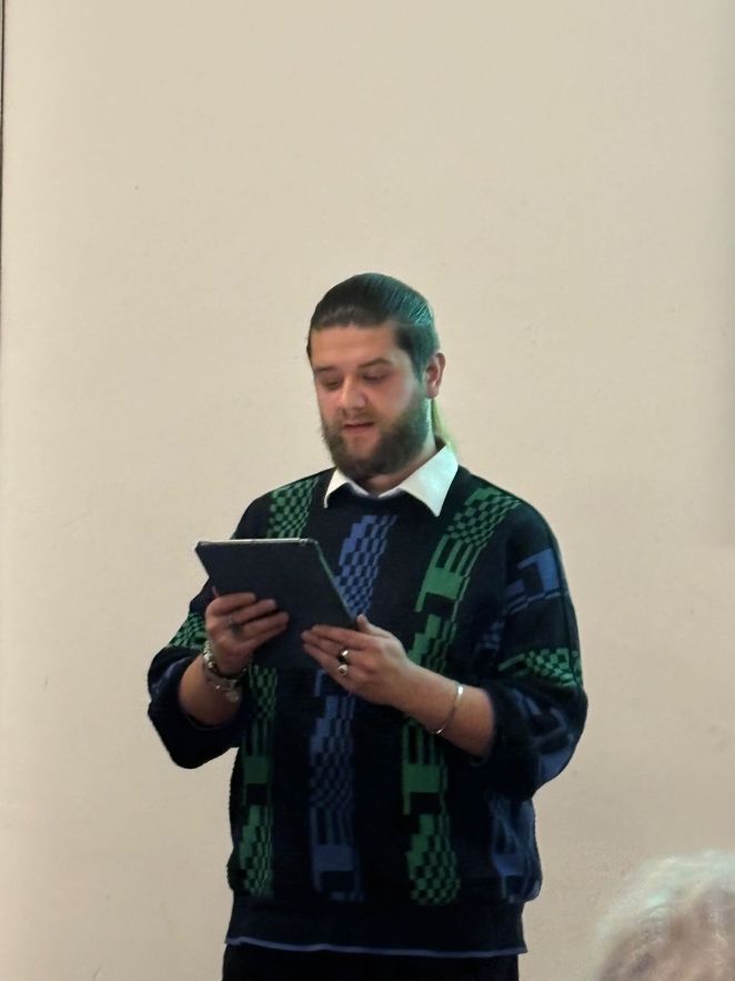 The Tudors of Dresden were happy to be back in Coventry for a fourth time after performing ‘Train of Life’ in 2020, ‘Last Stop: Clausnitz’ in 2022 and ‘In Darfur’ in 2024. Anita Barrows, American poet and psychologist, graciously allowed The Tudors to read a selection from her ‘Poems for Gaza’, 854 poems, one per day speaking to the most recent war in Palestine. Each student was allotted approximately 100 poems and was told to choose five to recite at the Coventry Friends’ Meeting House on 20 February 2026. Forty people attended the reading, including the Lord Mayor Rachel Lancaster, Coventry Poet Laureate Andrea Mbarushimana and the Cathedral Canon Kate Massey. This was followed by a discussion with the audience, clearly moved by Ms. Barrows compassionate words and the students’ emotional delivery.