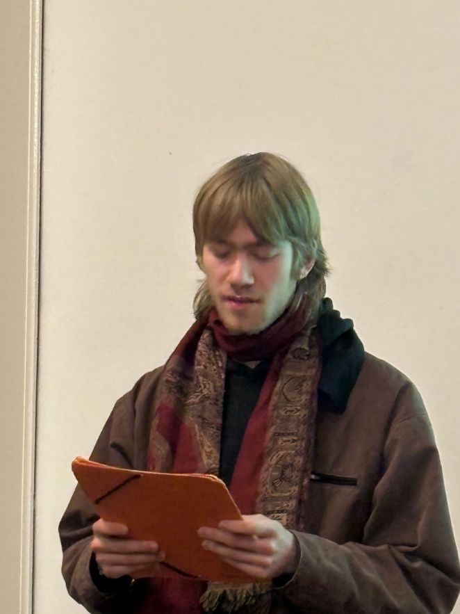 The poems were read by Charlie, Arthur, Tim, Annika, Illija, Katja, Elise, Emilia and Michelle with clarity and feeling and the evening felt traumatic as we were given an insight into a world of unimaginable woe. Marc was keen to say that they also put on lighter plays back in Dresden but somehow when they are touring they generally find themselves dealing with traumatic events. On their next visit they hope to perform something about the war in Ukraine, triggered by Marc’s visits there.